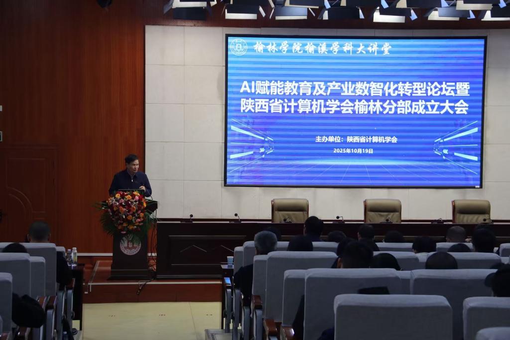 10月19日,“AI赋能教育及产业数智化转型论坛”在榆林学院逸夫楼报告厅举行,同时宣布陕西省计算机学会榆林分部正式成立。活动由陕西省计算机学会主办,榆林学院等单位承办,是一次面向区域经济与教育数字化转型的高水平学术与产业交流盛会。大会由CCF西北办事处主任牛瑞主持。